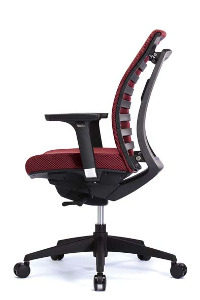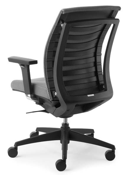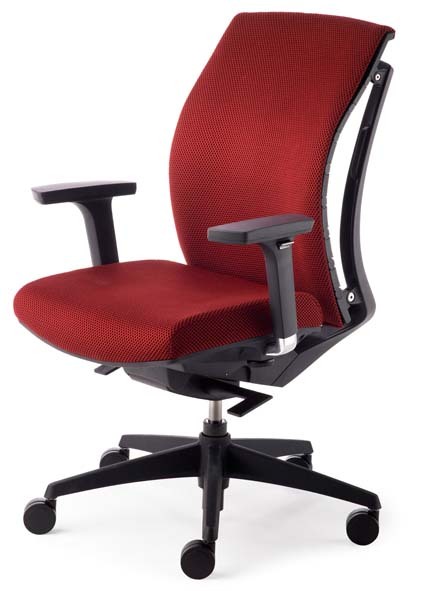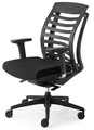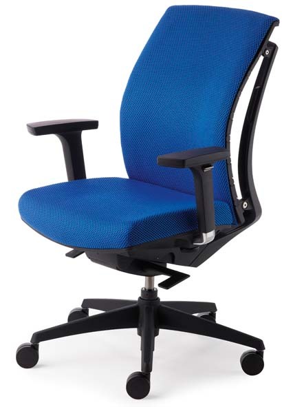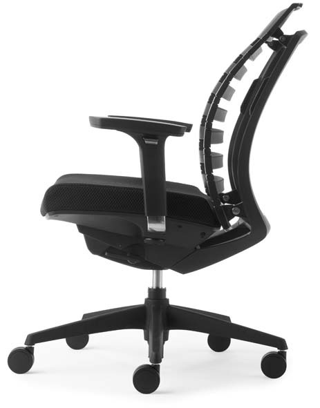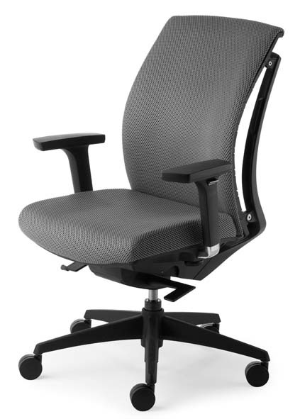 Gestell Kunststoff schwarz, Stoff-Polstersitz schwarz, Sitztiefenverstellung durch Schiebesitz,WAS-Kunststoff-Rücken schwarz. 4-fach verstellbare, in Höhe, Breite, Tiefe und schwenkbare, schwarze Armlehnen.